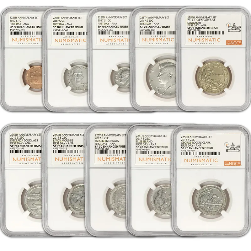 Explore the 2017 United States Enhanced Uncirculated Coin Set, a remarkable tribute to American numismatic craftsmanship. This first-day release features coins graded by NGC as SP70, showcasing an exquisite enhanced finish that elevates the details and luster of each coin. Recommended for collectors and investors alike, this set not only embodies a significant year in American coinage but also highlights the superior quality that can only be found in NGC-graded coins. Perfectly preserved and elegantly packaged, this Uncirculated Set represents a valuable addition to any collection, combining beauty, rarity, and historical significance.