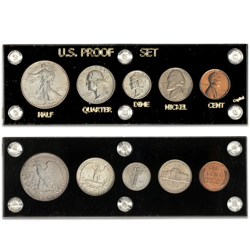 United States Proof Sets are unique items that were first produced in 1936 with a very limited release.  Proof coins refer to the method of production and not the finish of the coins although proof coins usually are distinguished by their mirror like surfaces.