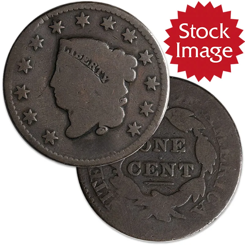 Discover the historical significance of the 1827 Large Cent, a captivating addition to any numismatic collection. Struck in copper and classified as a Good (G) quality coin, this penny represents a pivotal era in American history. The Large Cent, first minted in 1793, was produced annually until 1857, with the exception of 1815 due to the impact of the War of 1812. The conflict led to a wartime embargo that affected copper shipments from Great Britain, preventing the mint from obtaining new planchets necessary for coin production. This particular 1827 coin showcases the resilience of the U.S. Mint during challenging times and is an essential piece for collectors interested in early American currency.
