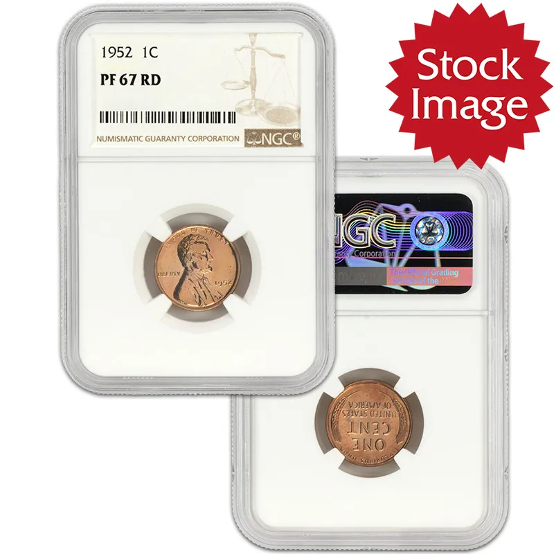 Discover the exquisite 1952 Lincoln Wheat Penny, graded NGC PF67 RD, a stunning representation of American numismatic history. This coin features the iconic design by Victor David Brenner, showcasing President Abraham Lincoln on the obverse and the intricate wheat ears on the reverse. Minted during a significant era in U.S. history, this penny is not just a piece of currency but a collectible treasure, perfect for both novice and seasoned collectors. Its state-of-the-art Proof finish adds a mirror-like shine, enhancing the intricate details of its craftsmanship. With its exceptional grade of PF67, this coin is in outstanding condition, making it a valuable addition to any collection. Invest in a piece of American heritage today with the 1952 Lincoln Wheat Penny - NGC PF67 RD, a choice that combines beauty, history, and potential value appreciation.