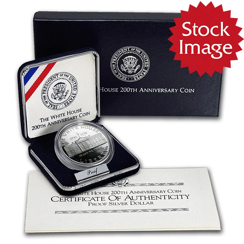 Discover the timeless elegance of the 1992 White House 200th Anniversary Proof Silver Dollar. Struck to commemorate the bicentennial of this iconic building, this exquisite coin features intricate details and is crafted from 90% silver, making it a beautiful addition to any numismatic collection. The reverse side showcases a stunning depiction of the White House, framed by laurel leaves, symbolizing peace and prosperity. With a limited mintage, this commemorative coin not only holds historical significance but is also a valuable investment opportunity for collectors. Enhance your collection with this remarkable piece of American history!