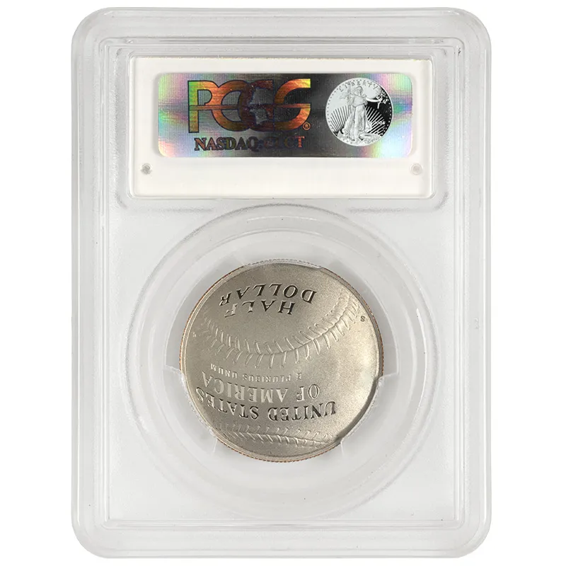 Discover the exquisite 2014 S Baseball Hall of Fame Proof Half Dollar, graded PCGS PR69 Deep Cameo (DCAM) and commemorating the cherished legacy of baseball's inaugural Hall of Fame Induction. Issued in 2014, this remarkable half dollar captures the essence of America's pastime, featuring a stunning design that pays tribute to baseball legends. The First Pitch Baltimore release highlights the iconic moments that shaped the sport. With its flawless PR69DCAM grading, this coin boasts exceptional quality and contrast, making it a must-have for serious collectors and investors alike. Enhance your numismatic collection with this limited edition commemorative coin, which not only celebrates baseball history but also holds significant investment potential. Secure your 2014 S Baseball Hall of Fame Proof Half Dollar today and own a piece of the game.