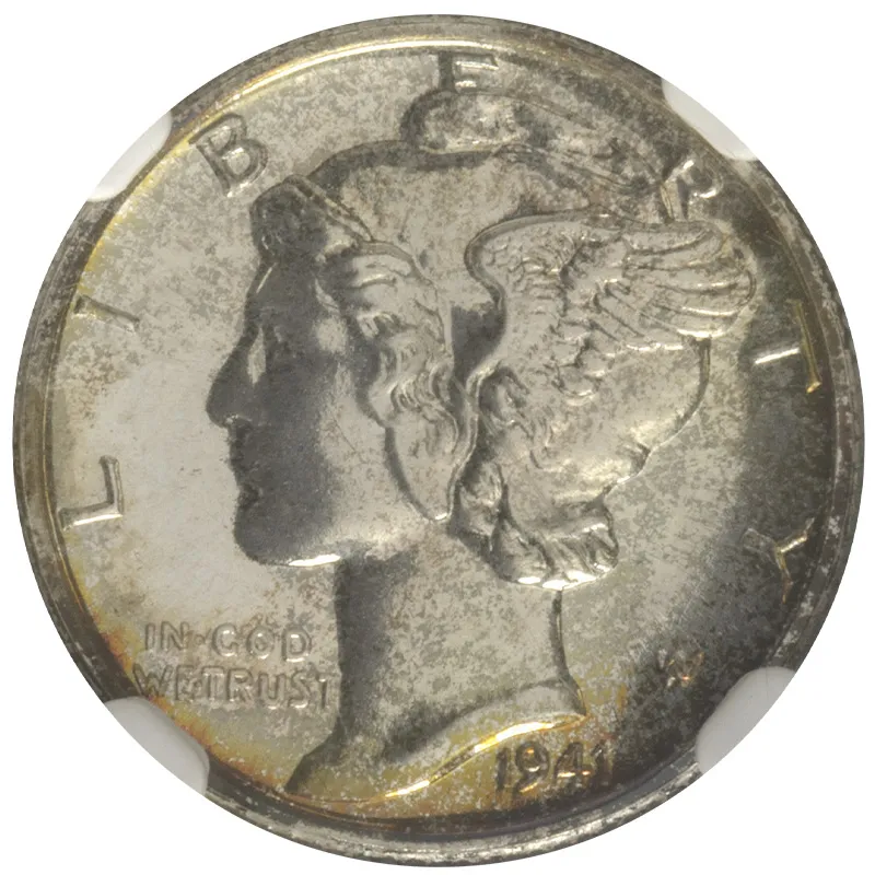 Discover the beauty and historical significance of the 1941 Mercury Dime, graded NGC PF66. This exceptional coin features the iconic designs of Adolph A. Weinman, showcasing Liberty in full splendor, adorned with her signature winged cap symbolizing freedom and mental agility. The reverse displays a striking depiction of a fasces and an olive branch, representing strength and peace. With its high proof designation of PF66 from the prestigious Numismatic Guaranty Corporation (NGC), this Mercury Dime exemplifies brilliant luster and remarkable detail, making it a valuable addition for both serious collectors and numismatic investors. Don't miss the opportunity to own a piece of American history that continues to captivate enthusiasts across generations!
