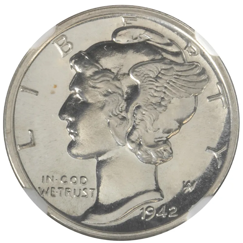 Explore the exquisite 1942 Mercury Dime, graded NGC PF66, a true gem for collectors and investors alike. This beautiful coin showcases exquisite craftsmanship and the iconic design by Adolph Weinman, marking it as a standout piece in American numismatics. The reverse features a detailed depiction of a fasces and olive branch, symbolizing strength and peace. With its stunning proof finish, this Mercury Dime shines brilliantly, capturing the interest of those who appreciate historical significance and artistry in coin collecting. Add this extraordinary 1942 Mercury Dime to your collection today and celebrate a piece of American history that continues to captivate coin enthusiasts.