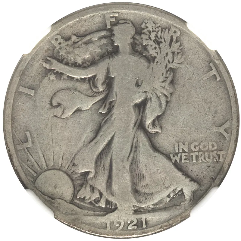 Discover the 1921 Walking Liberty Half Dollar, a cherished piece of American numismatic history with VG (Very Good) details, showcasing its rich design despite being improperly cleaned. This iconic half dollar features Adolph A. Weinman's stunning obverse depiction of Lady Liberty striding confidently, enveloped in the morning sun, while the reverse showcases the majestic eagle perched on a mountain, representing strength and freedom. Coin collectors and investors appreciate the 1921 Walking Liberty Half Dollar not only for its artistic beauty but also for its important place in the series, minted during a pivotal time in American history. Whether you are looking to add to your collection or seeking a unique gift, this half dollar is a must-have. Invest in history with this 1921 Walking Liberty Half Dollar today, and own a piece of America's numismatic legacy.