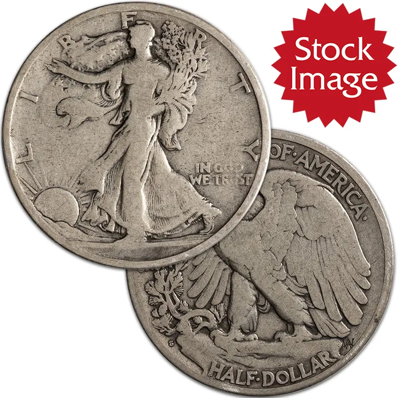The Walking Liberty Half Dollar was first minted in 1916 with a side profile of Liberty walking toward the sun on the obverse and a perched eagle on the reverse.