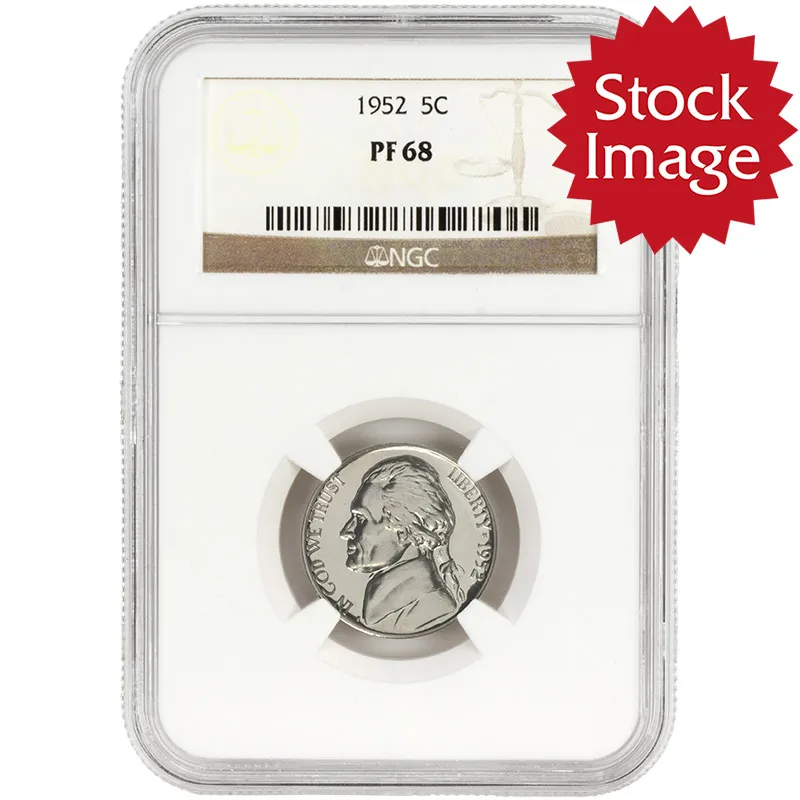 Discover the 1952 Jefferson Nickel, a stunning piece of American numismatic history, graded NGC PF68. This remarkable nickel features a beautiful mirrored finish and exceptional detail, showcasing the iconic portrait of Thomas Jefferson on the obverse, and Monticello on the reverse. Minted during a time of transition in the United States, the 1952 Jefferson Nickel is not just a coin; it is a testament to the artistry and craftsmanship of mid-century American coinage. With its high grade, this nickel is an excellent addition for both seasoned collectors and new investors alike, making it a valuable investment. Enhance your collection with this pristine piece, reflecting both beauty and historical significance.