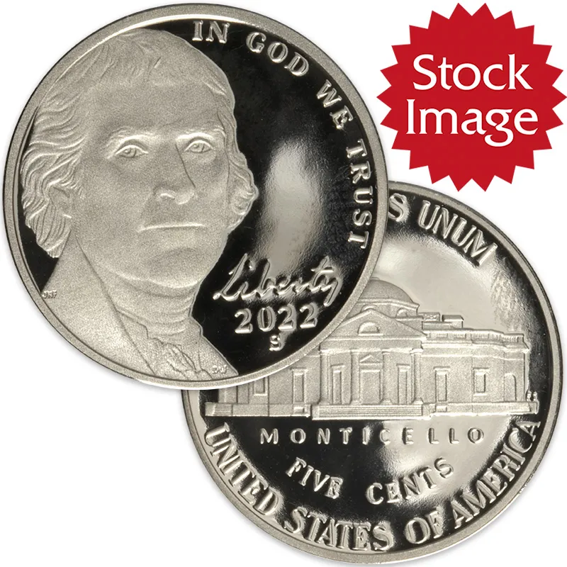Discover the exquisite 2022 S Jefferson Nickel, expertly struck in proof quality. This stunning coin, minted at the San Francisco Mint, showcases the iconic Jefferson design, celebrated for its historical significance and artistic merit. As a proof nickel, each piece is meticulously crafted to feature a mirror-like finish and razor-sharp details, making it a prized addition to any numismatic collection. The 2022 S Jefferson Nickel symbolizes the enduring legacy of American coinage and serves as a testament to the craftsmanship of our minting processes. Ideal for both collectors and investors alike, this nickel promises both aesthetic appeal and lasting value in your collection.