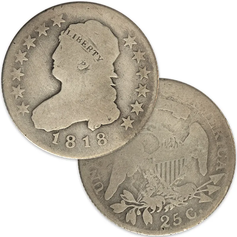 Discover the exceptional 1818 Capped Bust Quarter, graded as About Good, a significant piece for both collectors and investors in numismatics. This coin showcases the iconic Capped Bust design, which reflects the artistic excellence of early American coinage. Minted in 1818, this quarter offers a glimpse into U.S. history during its formative years. The About Good condition indicates visible wear while preserving essential details, making it an excellent addition to any numismatic collection. Enhance your portfolio with this historical coin that not only represents monetary value but also the artistry of its era.