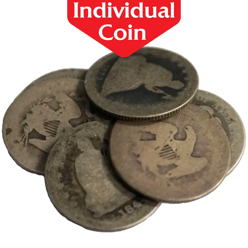 The Seated Liberty Quarter was first minted in 1838 with Liberty on the obverse and an eagle clutching arrows and an olive branch on the reverse.