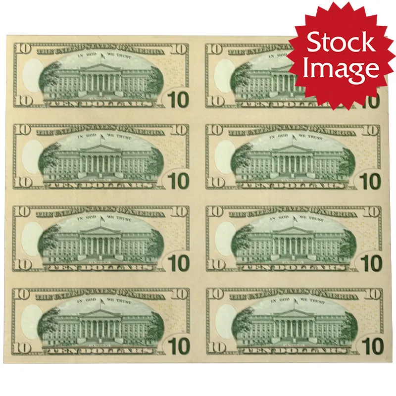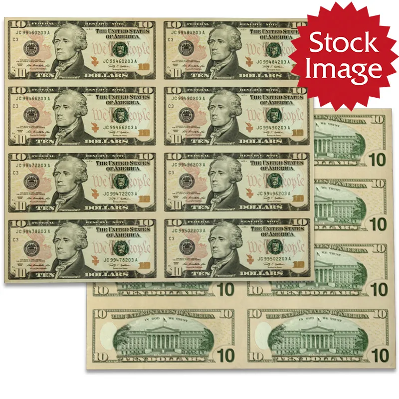Discover the rare and collectible 2009 Uncut Sheet of 8 $10 Notes, a must-have for numismatic enthusiasts and investors alike. This uncut sheet features sixteen pristine $10 bills from the 2009 series, showcasing intricate designs and vibrant colors. Ideal for display or investment, this uncut sheet not only preserves the beauty of American currency but also holds significant value in the collector's market. Each sheet is considered a limited edition, making it a unique addition to any collection. Secure this extraordinary piece of financial history today and elevate your numismatic investment portfolio!