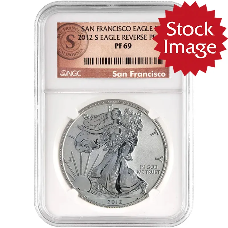 The Reverse Proof Silver Eagle from the two-coin 75th Anniversary American Silver Eagle Set.
