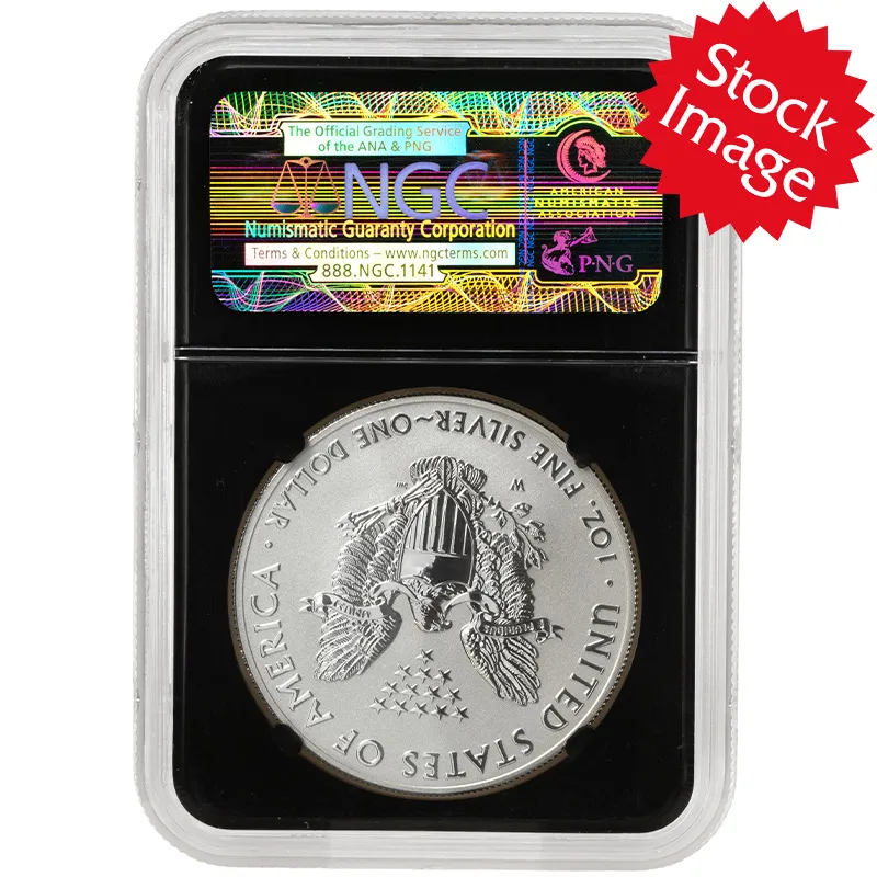 The Reverse Proof Silver Eagle from the two-coin 75th Anniversary American Silver Eagle Set.