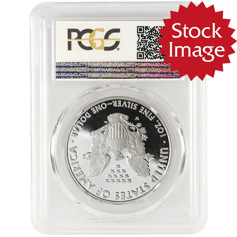 These American Eagle Silver Proof dollar coins have been produced each year by the United States government mint since 1986. Considered by many to be one of the most beautiful American coin designs, it is modeled after the old Walking Liberty half dollars. Each official US proof issued dollar coin contains 1 ounce of pure silver.