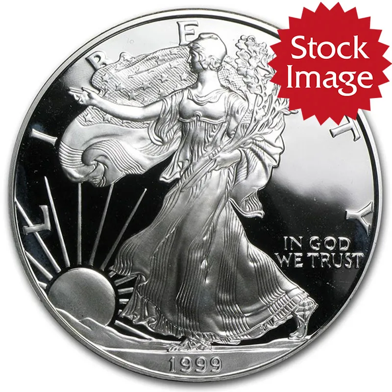 These American Eagle Silver Proof dollar coins have been produced each year by the United States government mint since 1986.  Considered by many to be one of the most beautiful American coin designs, it is modeled after the old Walking Liberty half dollars.  Each official US proof issued dollar coin contains 1 ounce of pure silver.  Each proof coin comes in the official government issued velvet lined gift box along with the original certificate of authenticity (COA) or insert card.
