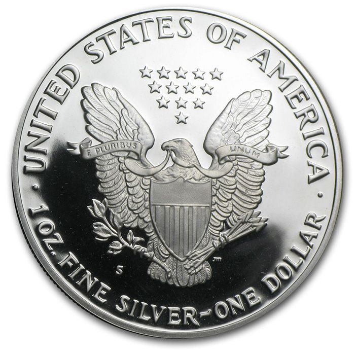 These American Eagle Silver Proof dollar coins have been produced each year by the United States government mint since 1986.  Considered by many to be one of the most beautiful American coin designs, it is modeled after the old Walking Liberty half dollars.  Each official US proof issued dollar coin contains 1 ounce of pure silver.  This item will come with the Proof Silver Eagle and the clear encapsulation only, and does not have the outer box or COA.
