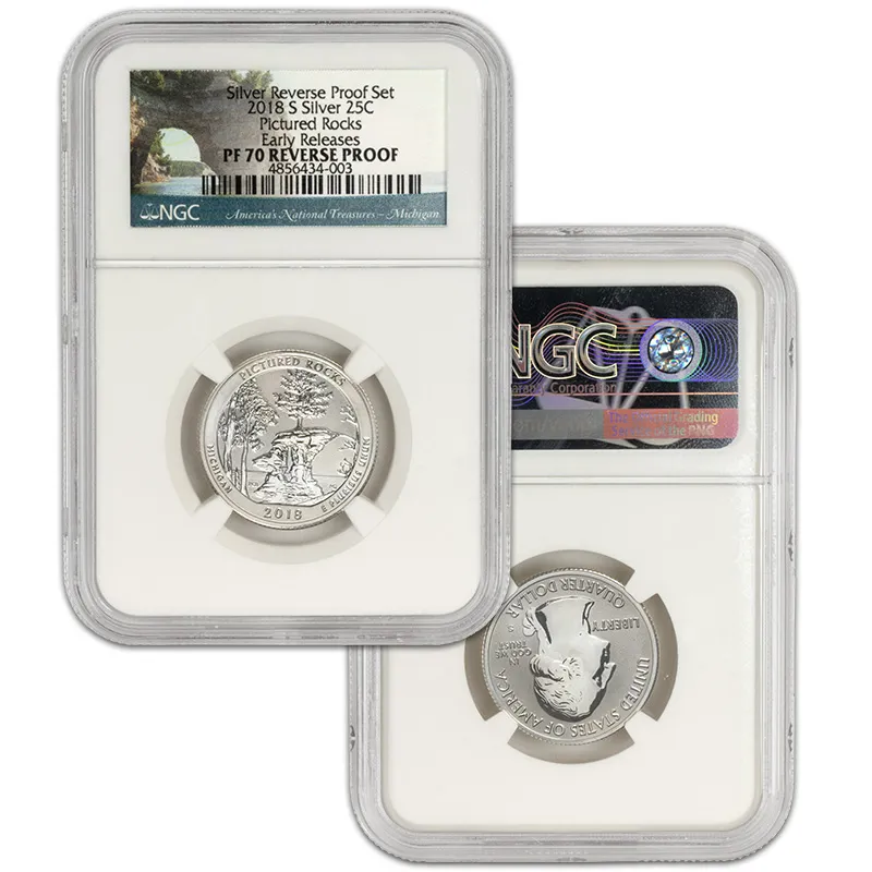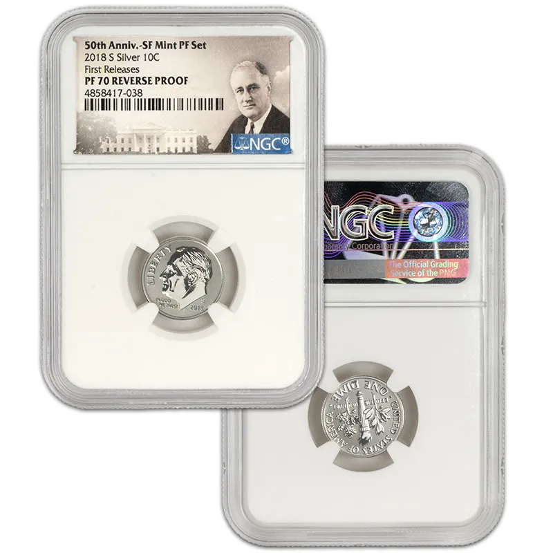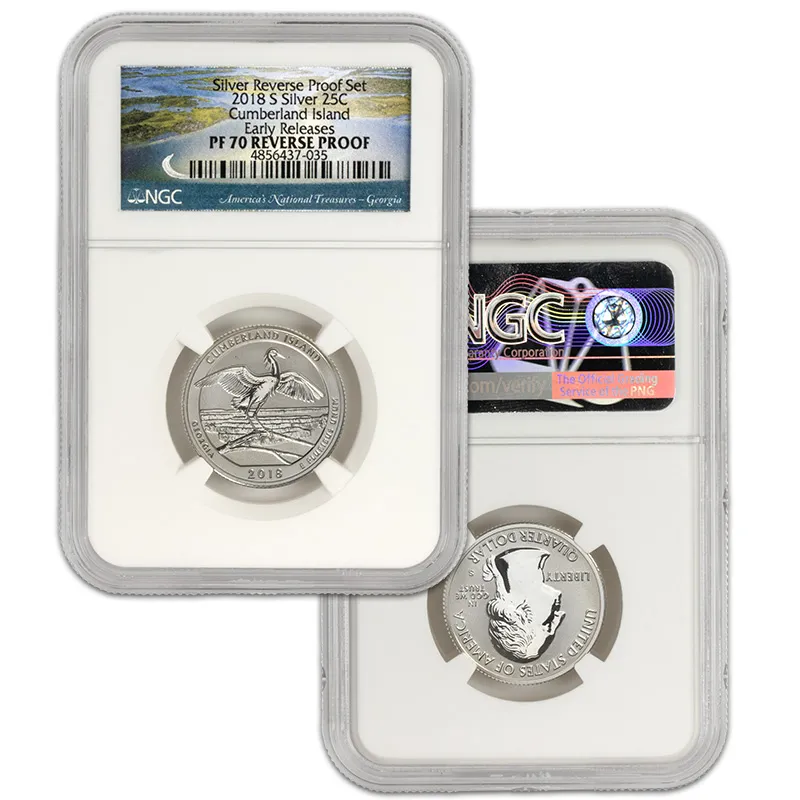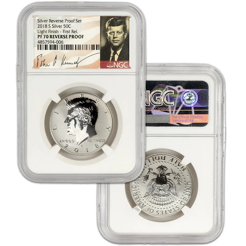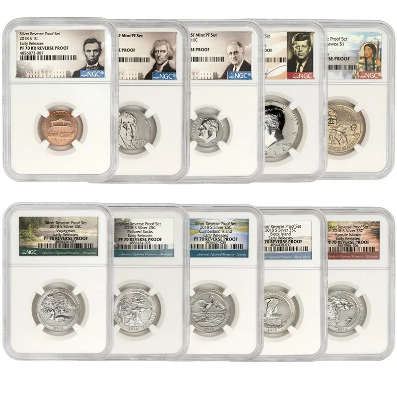 Discover the exquisite 2018 S US Mint Silver Proof Set, featuring the NGC PF70 Reverse Proof designation, recognized for its unparalleled quality and stunning visual appeal. This Early Release set showcases a beautifully crafted selection of coins minted in San Francisco, consisting of the latest iconic designs that celebrate American numismatics. Each coin in the set has received the esteemed NGC (Numismatic Guaranty Corporation) grading of PF70, indicating a flawless finish, making this set a perfect addition to any serious collector’s portfolio. With the Reverse Proof finish, these coins exhibit a mirror-like surface contrasted against frosted designs, exemplifying artistry and precision of the mint. Add this coveted 2018 S Silver Proof Set to your collection today and invest in a piece of history that stands out not just for its craftsmanship but also for its potential value appreciation over time. Don't miss your chance to own this remarkable mint set, not just as an investment, but as a celebration of American heritage.