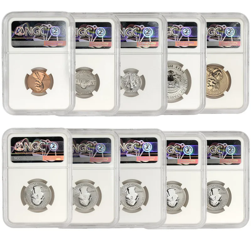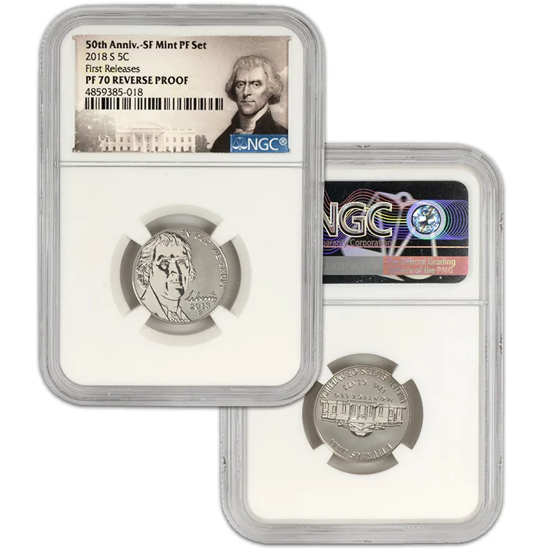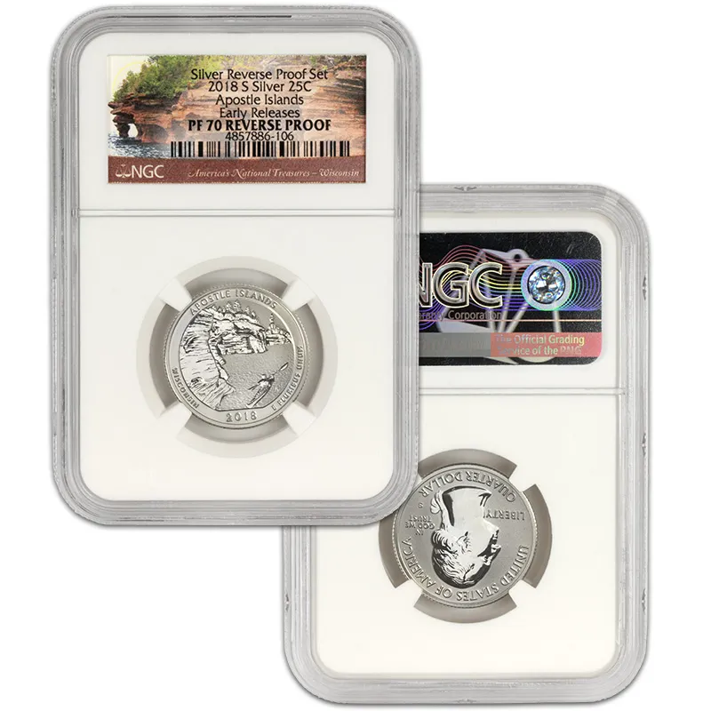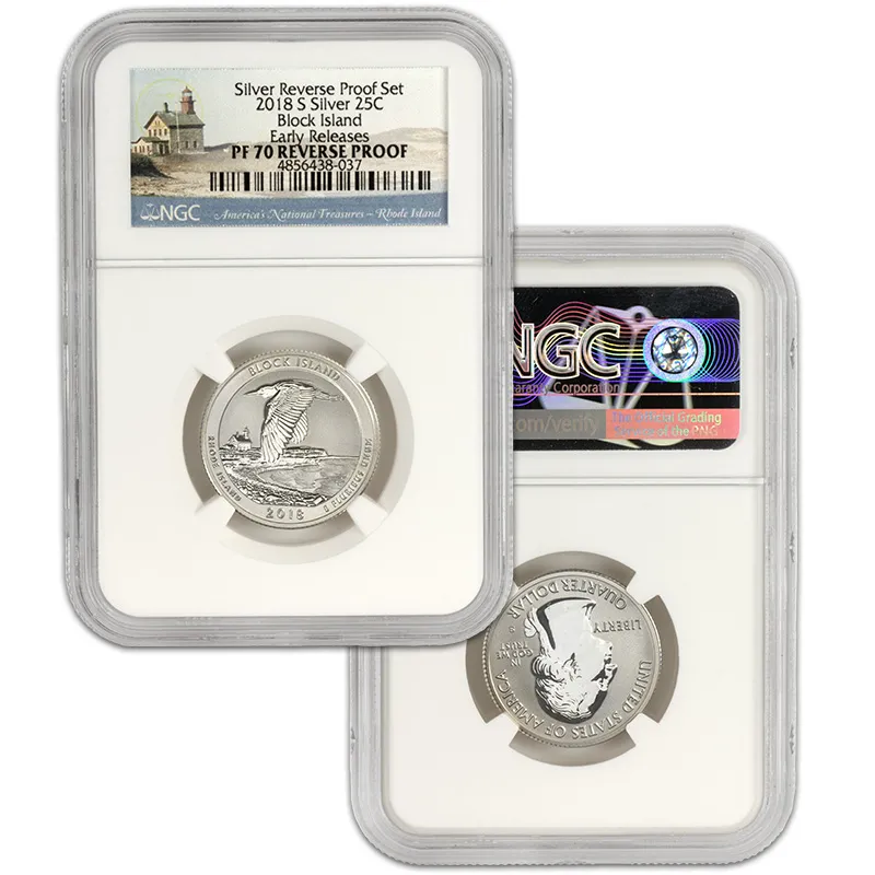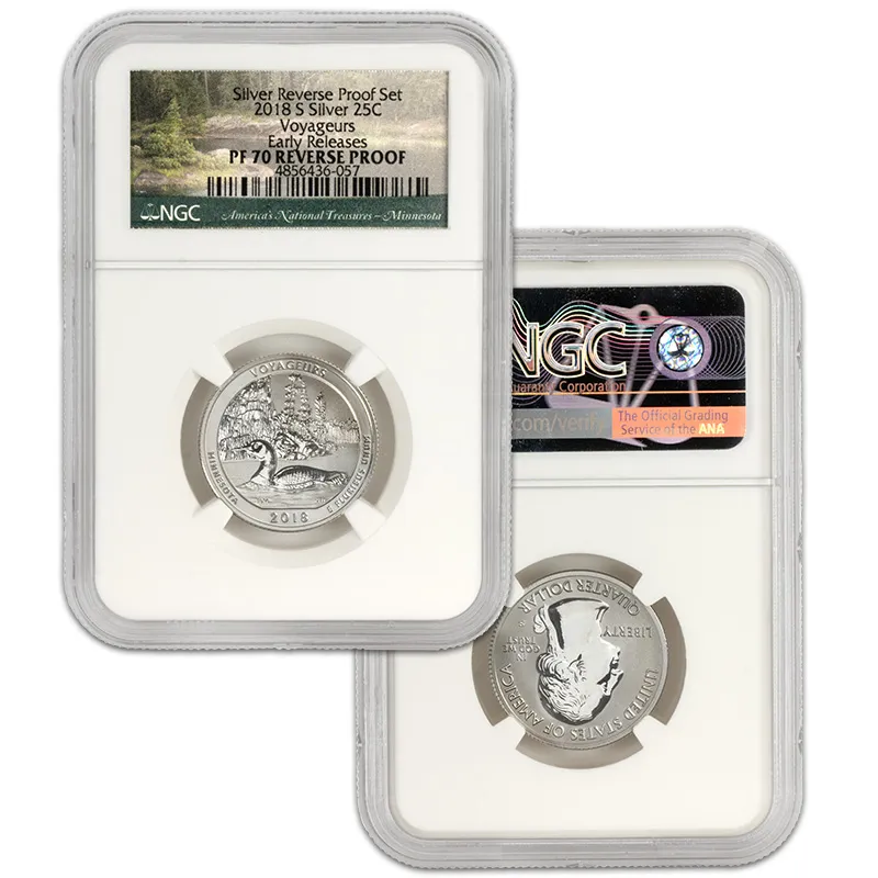 Discover the exquisite 2018 S US Mint Silver Proof Set, featuring the NGC PF70 Reverse Proof designation, recognized for its unparalleled quality and stunning visual appeal. This Early Release set showcases a beautifully crafted selection of coins minted in San Francisco, consisting of the latest iconic designs that celebrate American numismatics. Each coin in the set has received the esteemed NGC (Numismatic Guaranty Corporation) grading of PF70, indicating a flawless finish, making this set a perfect addition to any serious collector’s portfolio. With the Reverse Proof finish, these coins exhibit a mirror-like surface contrasted against frosted designs, exemplifying artistry and precision of the mint. Add this coveted 2018 S Silver Proof Set to your collection today and invest in a piece of history that stands out not just for its craftsmanship but also for its potential value appreciation over time. Don't miss your chance to own this remarkable mint set, not just as an investment, but as a celebration of American heritage.